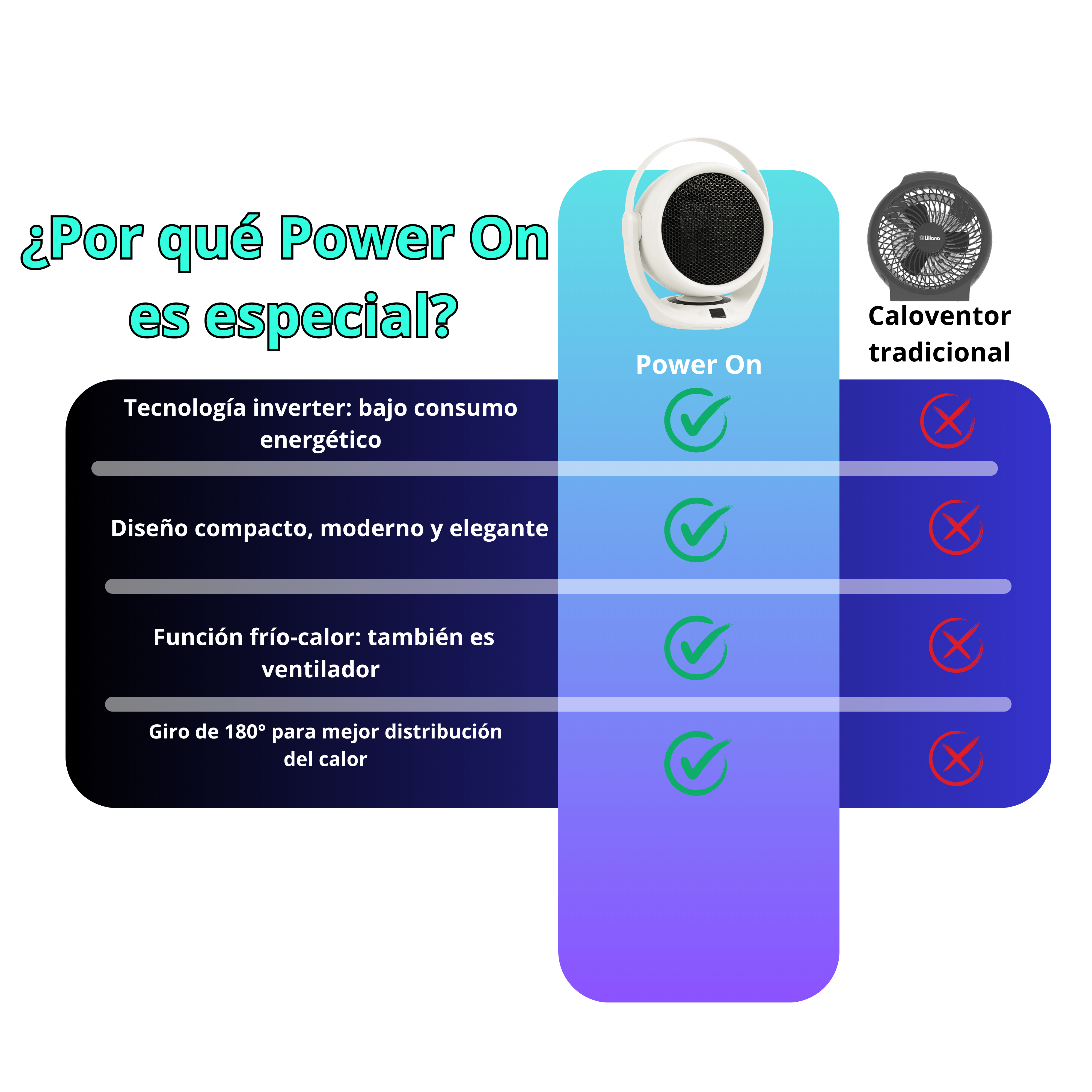 No. Gracias a su sistema inverter, el Power On es altamente eficiente y consume hasta un 50% menos que un caloventor tradicional.